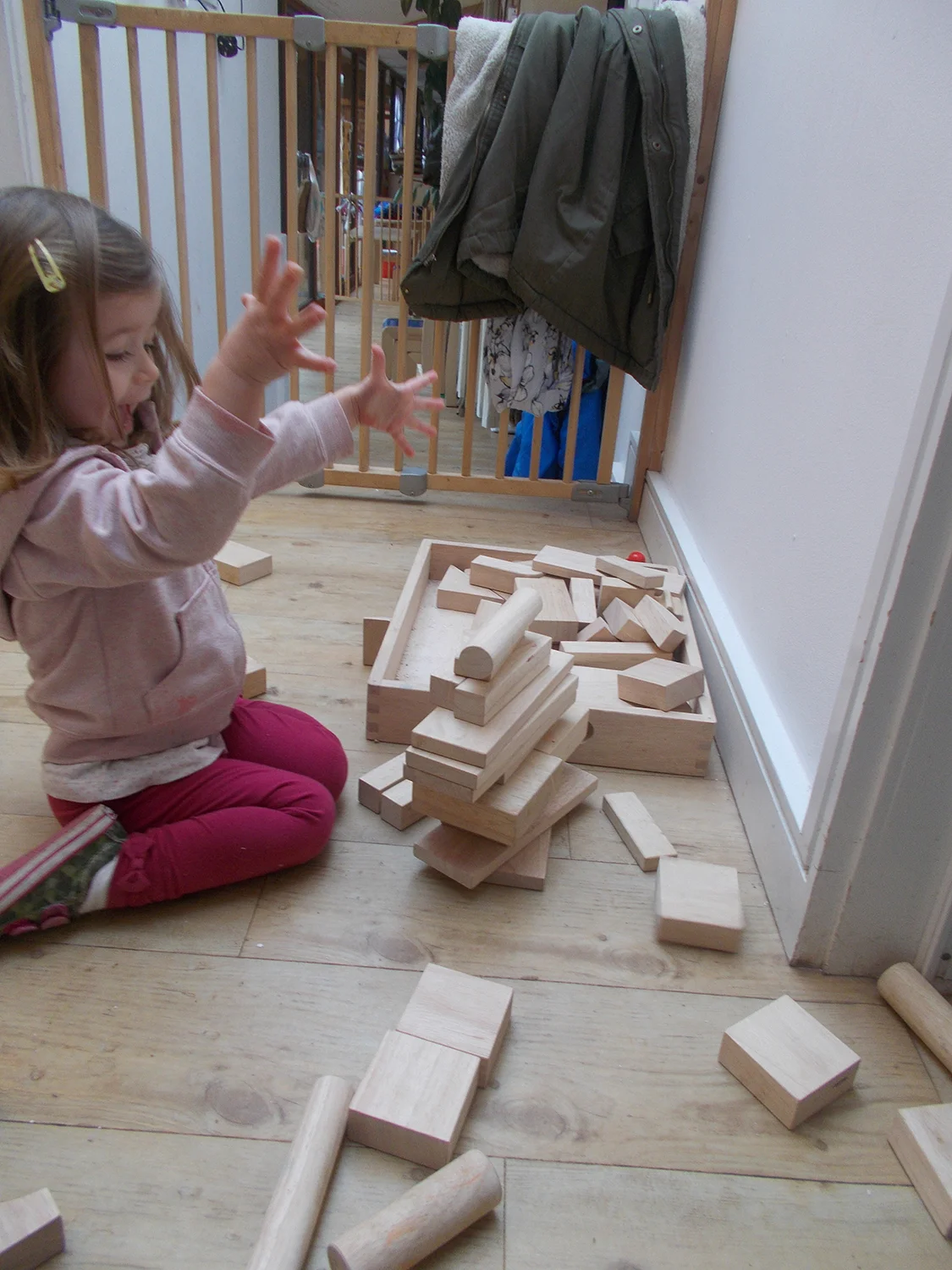 The best part of all this learning which we can observe is that to the children it is just FUN! They can build their towers and best of all knock them straight down again! Have a look at some of the pictures of the children’s building this week, using different materials, shapes and sizes. Their imagination was one of the best parts of this as some children made tall towers and others made “Houses for pigs,” “Garages for trains” and “Spaceships” all showing how a simple learning resource can be transformed with a bit of imagination!
