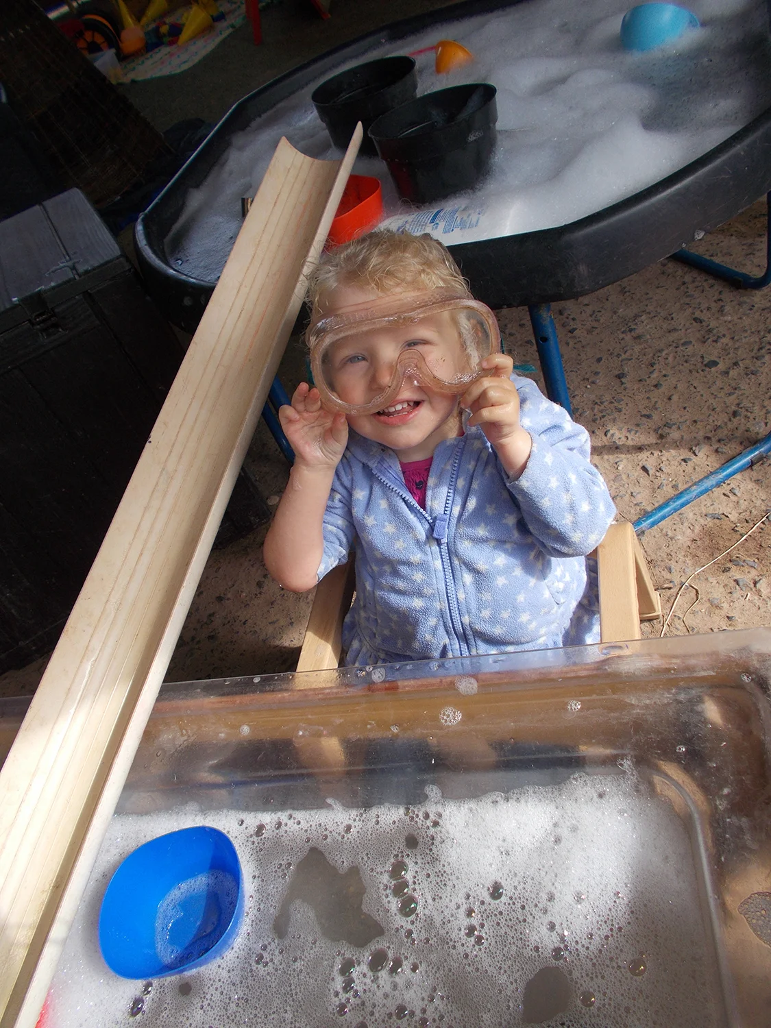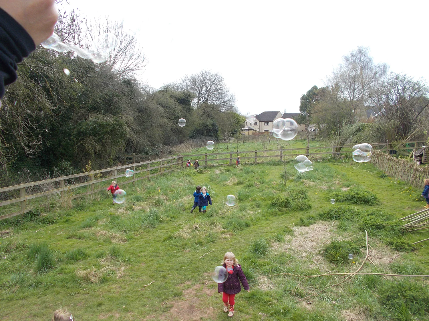 When the sun has been shining, we’ve got ourselves out in the garden to have our snack, sitting on our wooden pallets or we’ve been out into the paddock with our picnic blankets and after that off we go! We’ve been chasing bubbles around the paddock, climbing the mud hill and going down the slide, playing hide and seek, negotiating the timber trail, the tunnels and so much more. In the garden we’ve played tennis, golf, football and we have been drawing using chalks on the patio in the garden. There has also been lots of singing our new favourite song “Jack and Jill”, we climb up the small hill in the garden singing “Jack and Jill went up the hill to fetch a pale of water…Jack fell down and broke his crown” and at this point all the children roly poly down one side of the hill!
