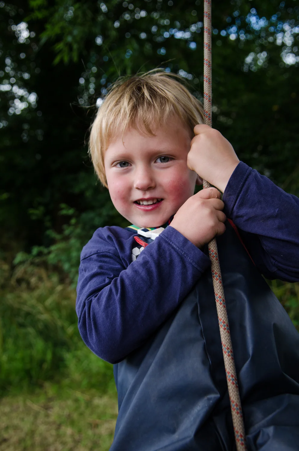 Moving on, I allowed the children to either use the rope and pulleys as either a weight pulling mechanism with a large bucket attached or whether they want to use it as a swing. With the idea still fresh in their minds that with more hands helping, a heavy item becomes much easier to manage especially with the pulley to help, I quizzed the children as to whether they could lift the children or weight, to which I reminded them the pulley was going to help shed the weight of the load too! Let's give it go! I have to say, even I was a little surprised at the ease of which they managed it! The combined strength of 8 little bodies with the willingness to succeed, is not something to trifle with! Rope were also used freely as well. Another focus for the session was the development of finer motor skills and seeing how we could use the rope. Children tied, lashed, wrapped and pulled the ropes in a plethora of different ways to both control play as well as create it.