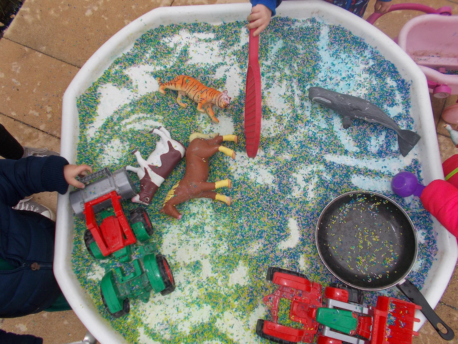 Now the sunshine’s finally made an appearance the cover of the ball pit has come off! The children have been exploring the ball pit in many different ways whether it be climbing in and out, throwing the balls or just sitting in there. When the children have been exploring the ball pit staff members have been talking to them about what they could see whether it be the different colours of the balls or how many we were about to count! The Hive children’s speech has really come on over the past few weeks – and they’ve been telling us what they want using their language!